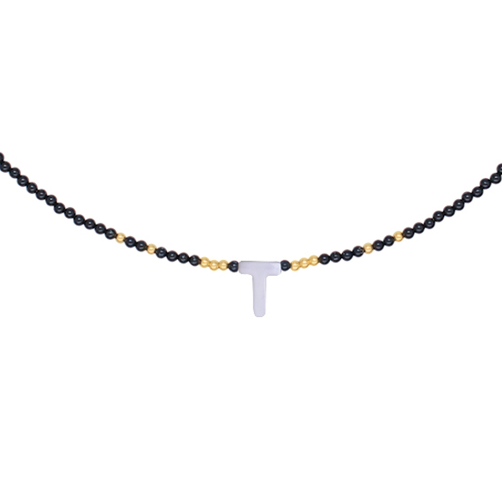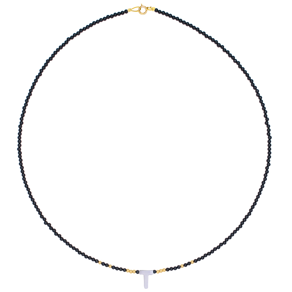 Κολιέ με Κ14 χρυσά στοιχεία, όνυχα και μονόγραμμα Τ με mother of pearl - F124766T