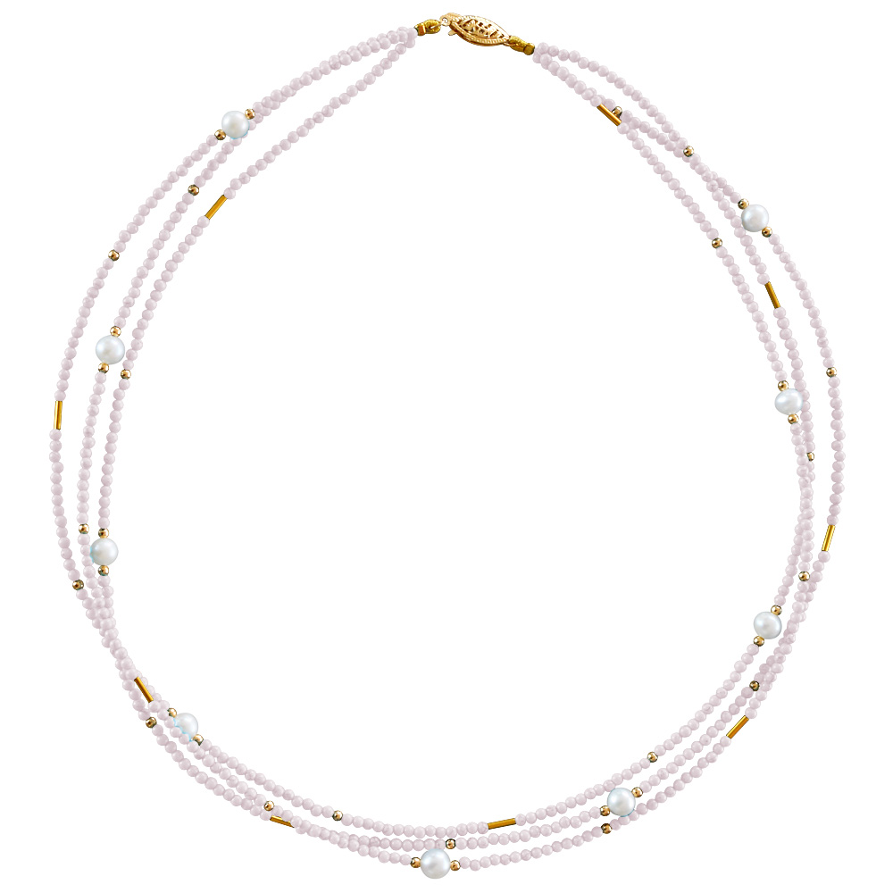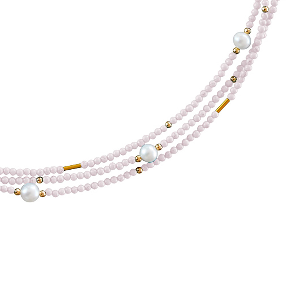 Κολιέ με Κ22 χρυσά στοιχεία, Pink quartz και μαργαριτάρια - M122605PQ