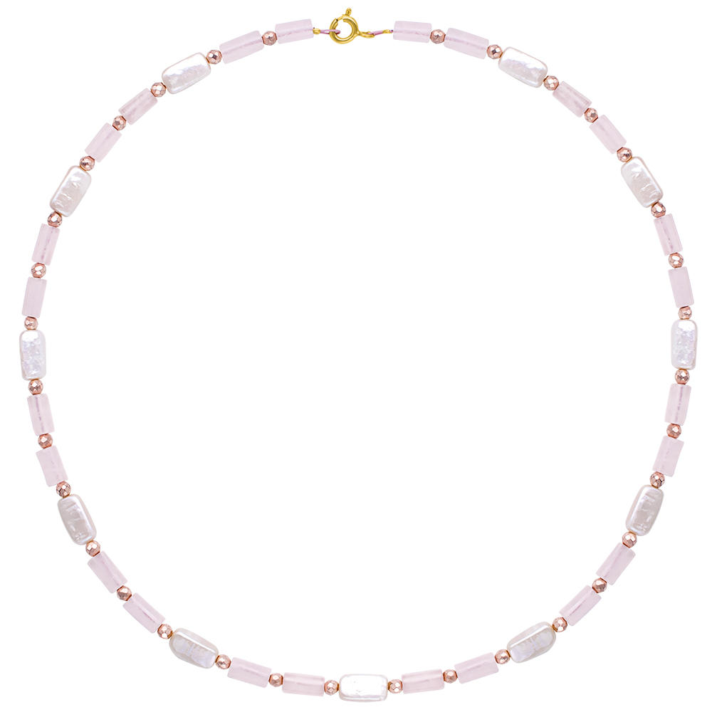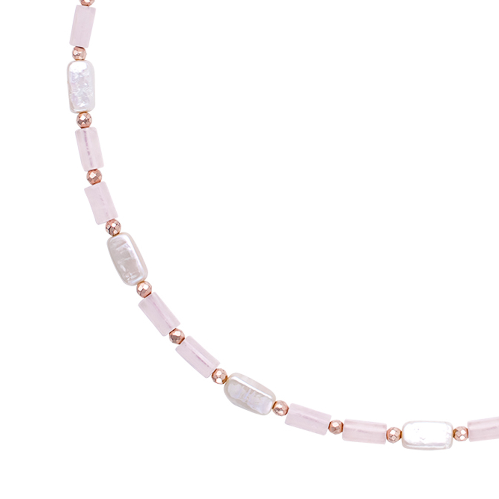 Κολιέ με μαργαριτάρια, rose quartz και hematite και ασημένιο κούμπωμα 925 - F124389