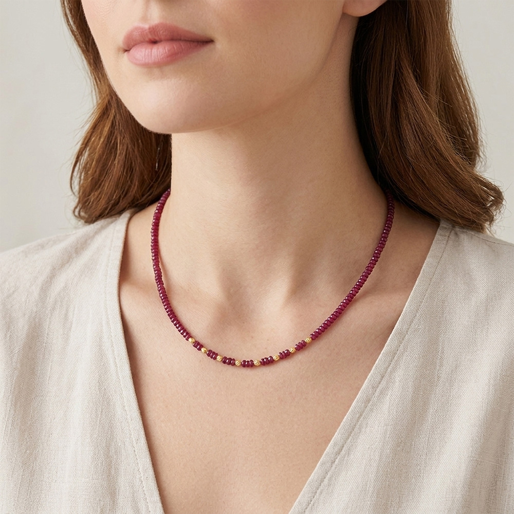 Ένα εντυπωσιακό κολιέ που δημιουργήσαμε για εσάς που αγαπάτε τα ρουμπίνια και τον αξεπέραστη λάμψη του χρυσού.