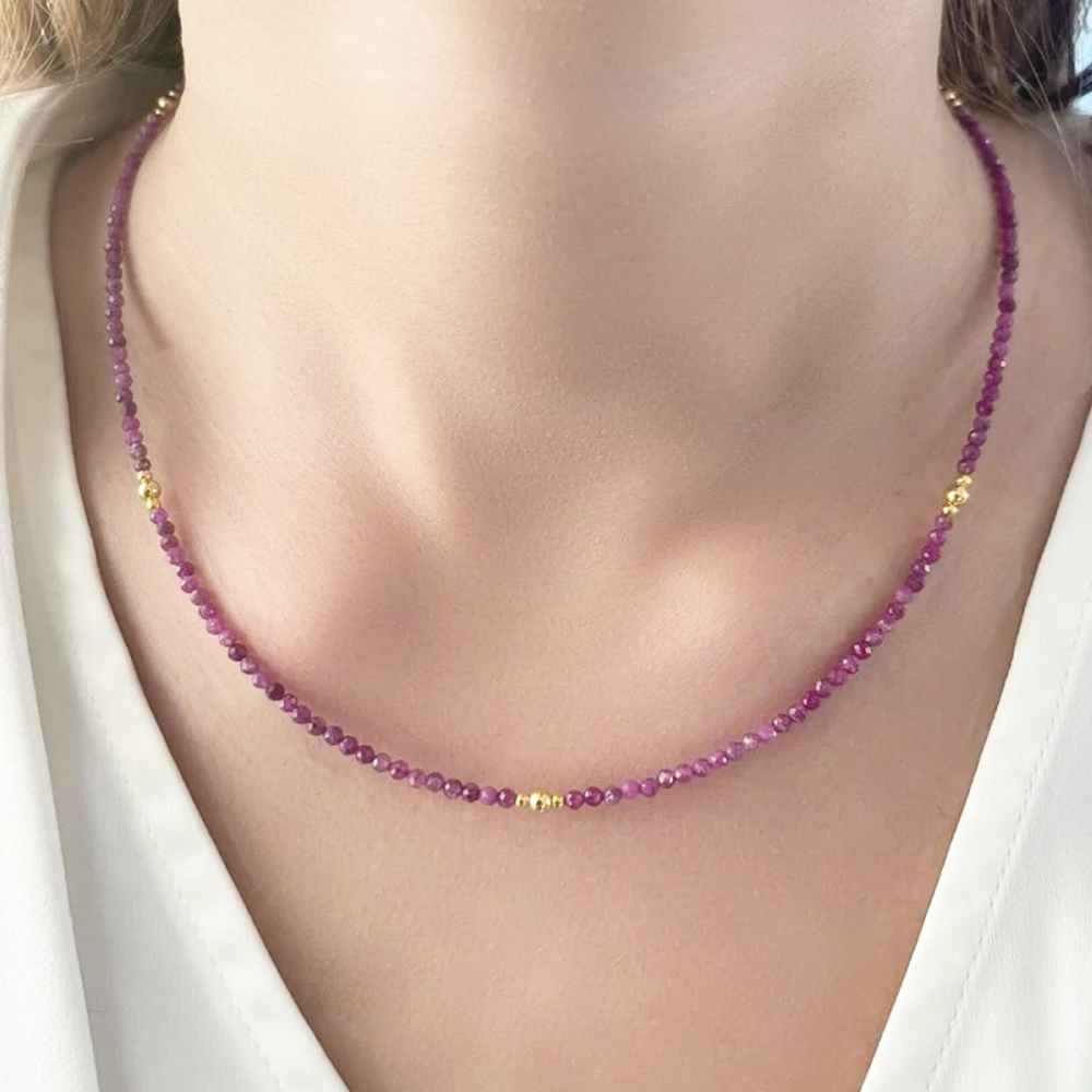 • Ένα υπέροχο κολιέ με φασεταρισμένο ρουμπινίτη διαμέτρου 2,5-3 χιλιοστών.