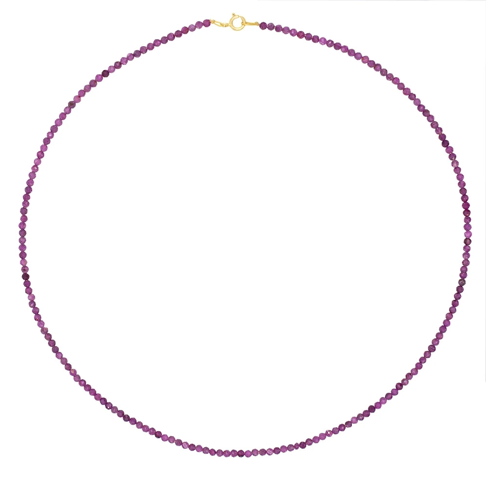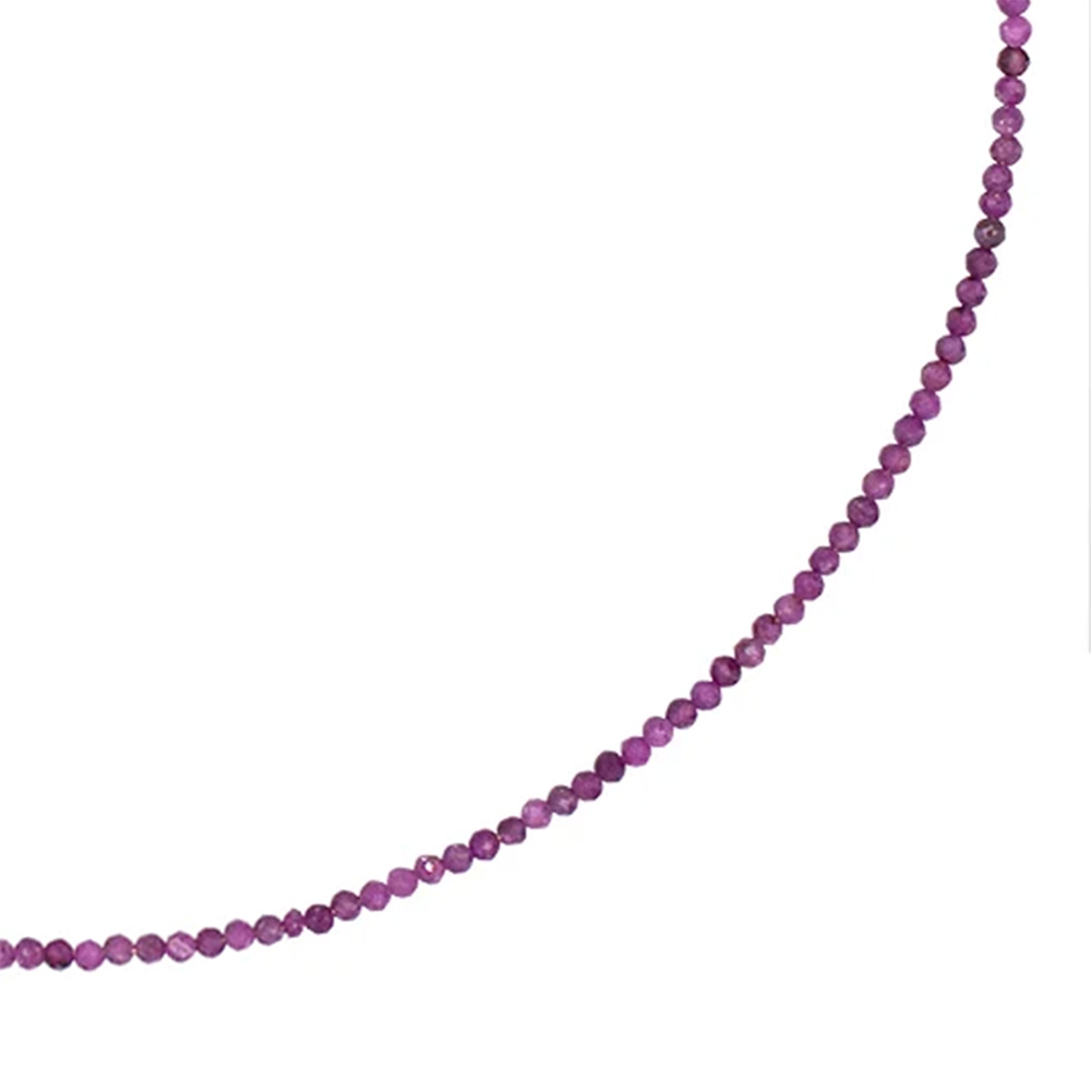 • Ένα υπέροχο κολιέ με φασεταρισμένο ημιπολύτιμο λίθο ρουμπινίτη διαμέτρου 2,5 χιλιοστών.