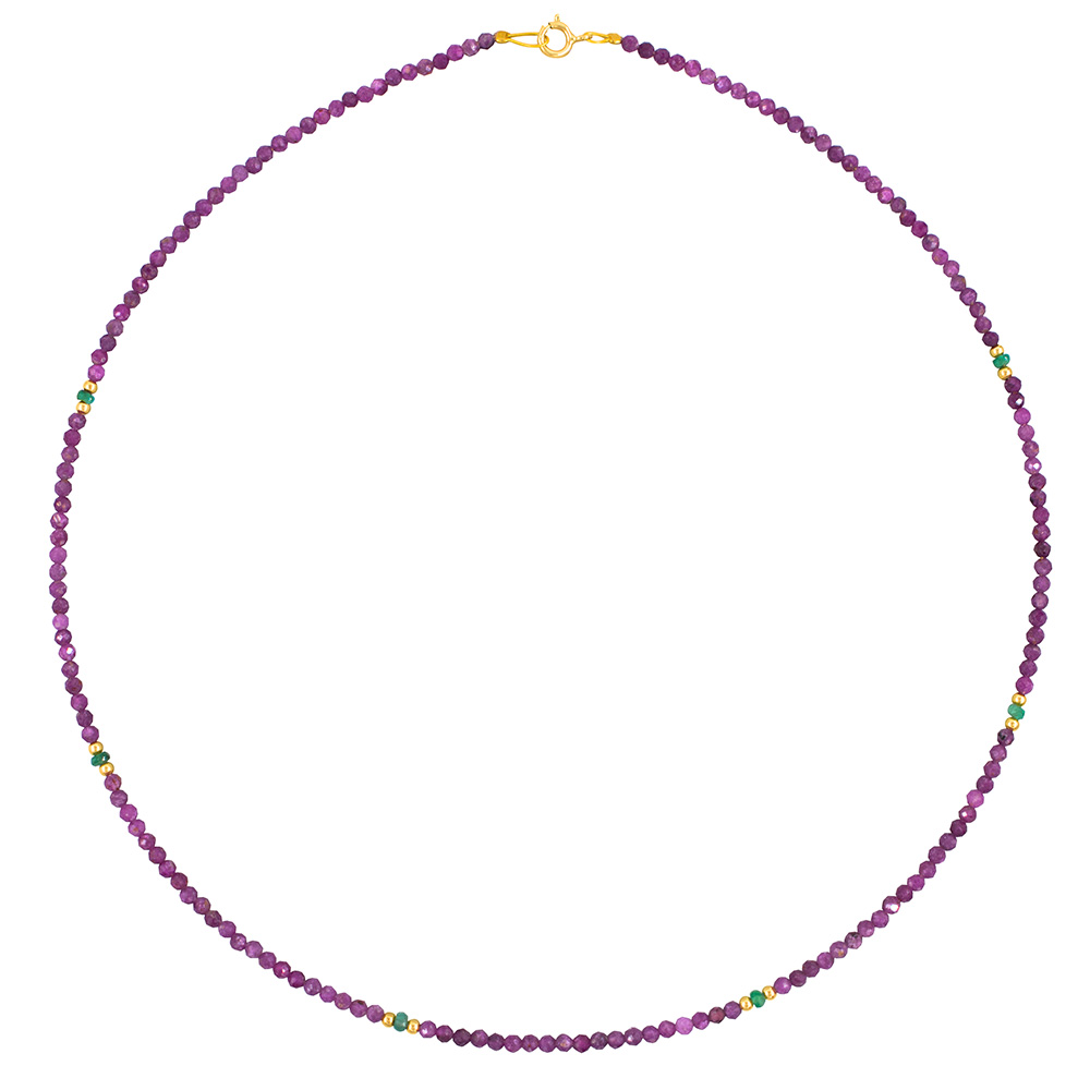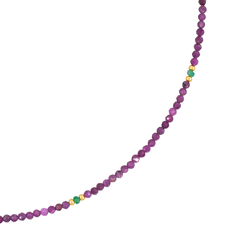 Κολιέ με Κ14 χρυσά στοιχεία ρουμπινίτη και σμαράγδια - F126294