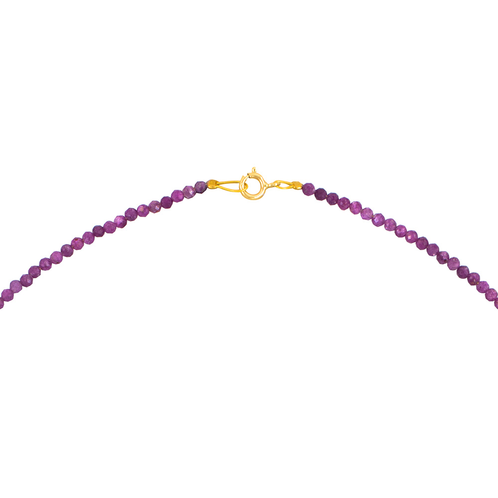 • Ένα υπέροχο κολιέ με φασεταρισμένο ημιπολίτιμο λίθο ρουμπινίτη διαμέτρου 2,5 χιλιοστών.