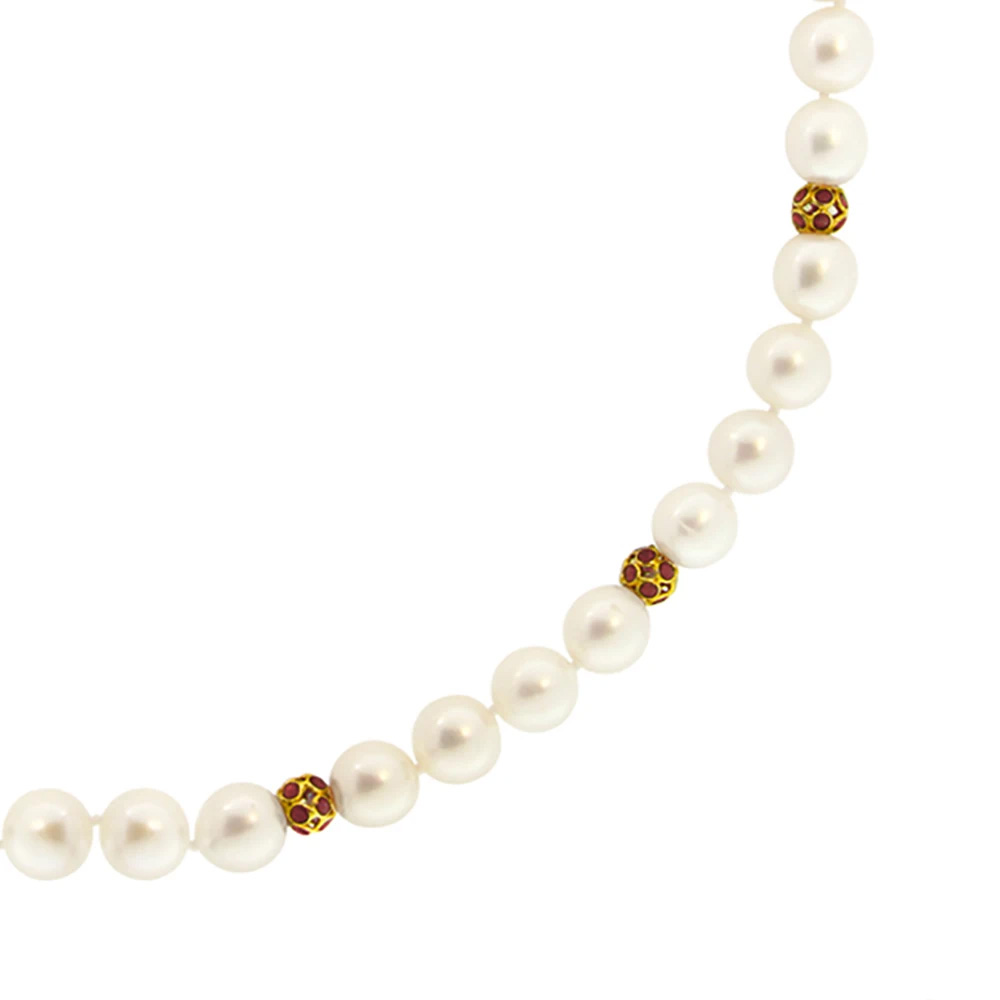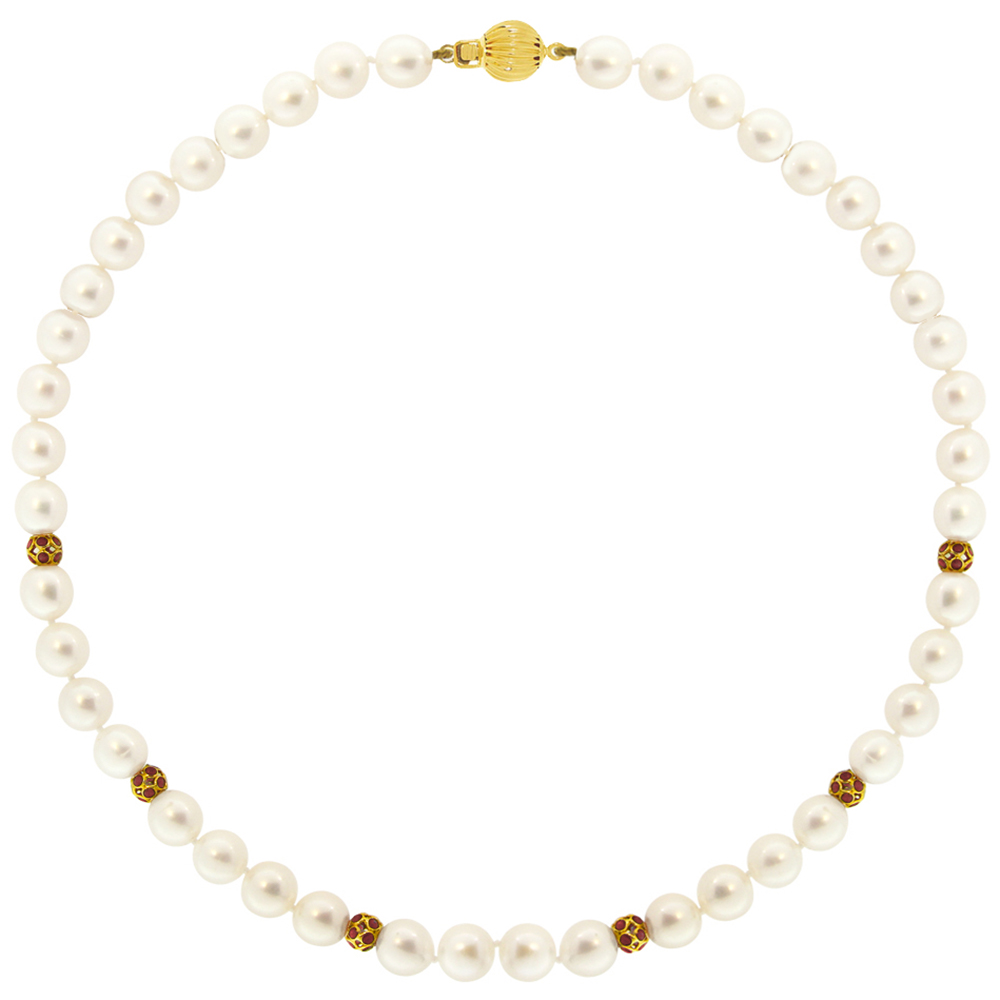 Κολιέ με Κ18 χρυσό κούμπωμα, μαργαριτάρια και ρουμπίνια - M114369R