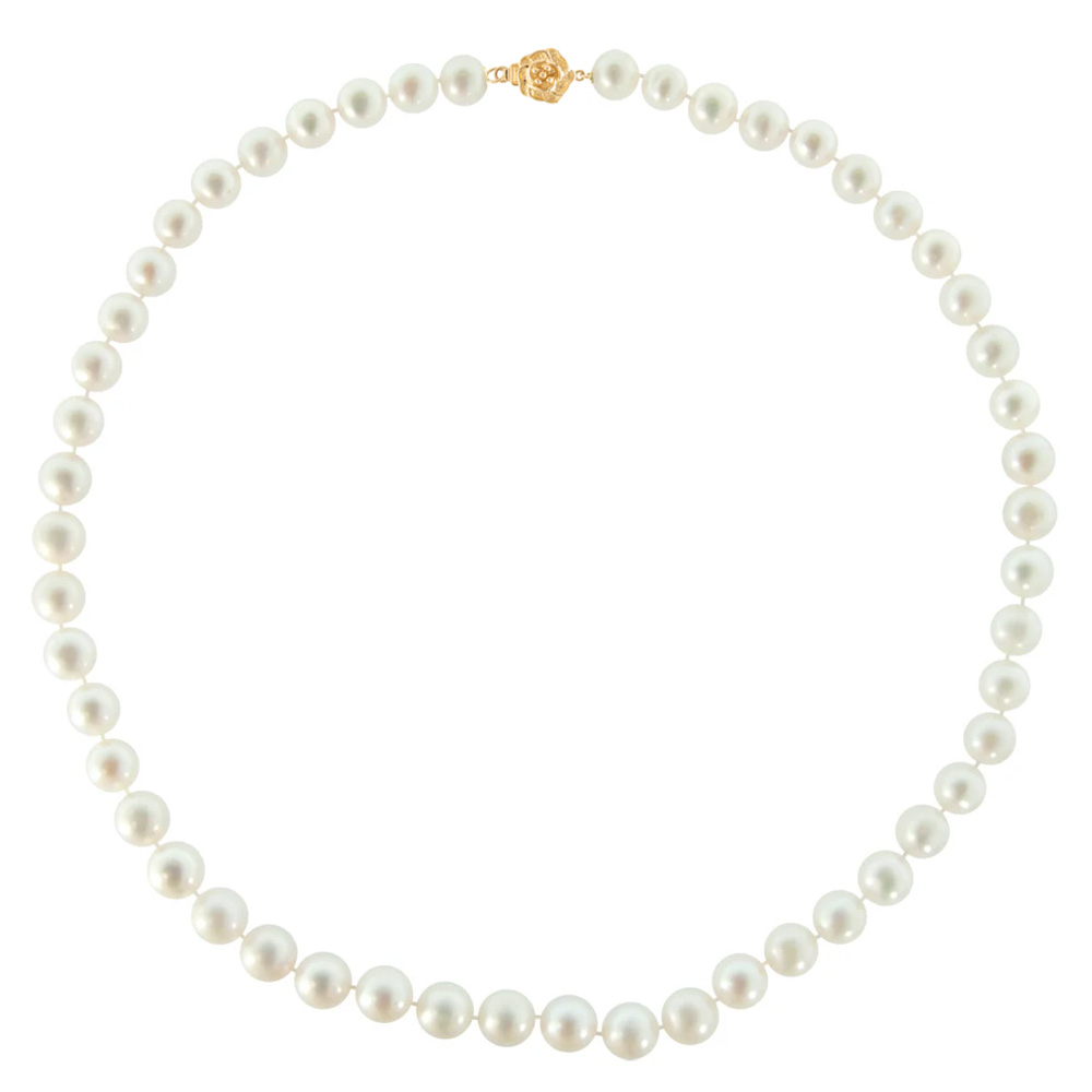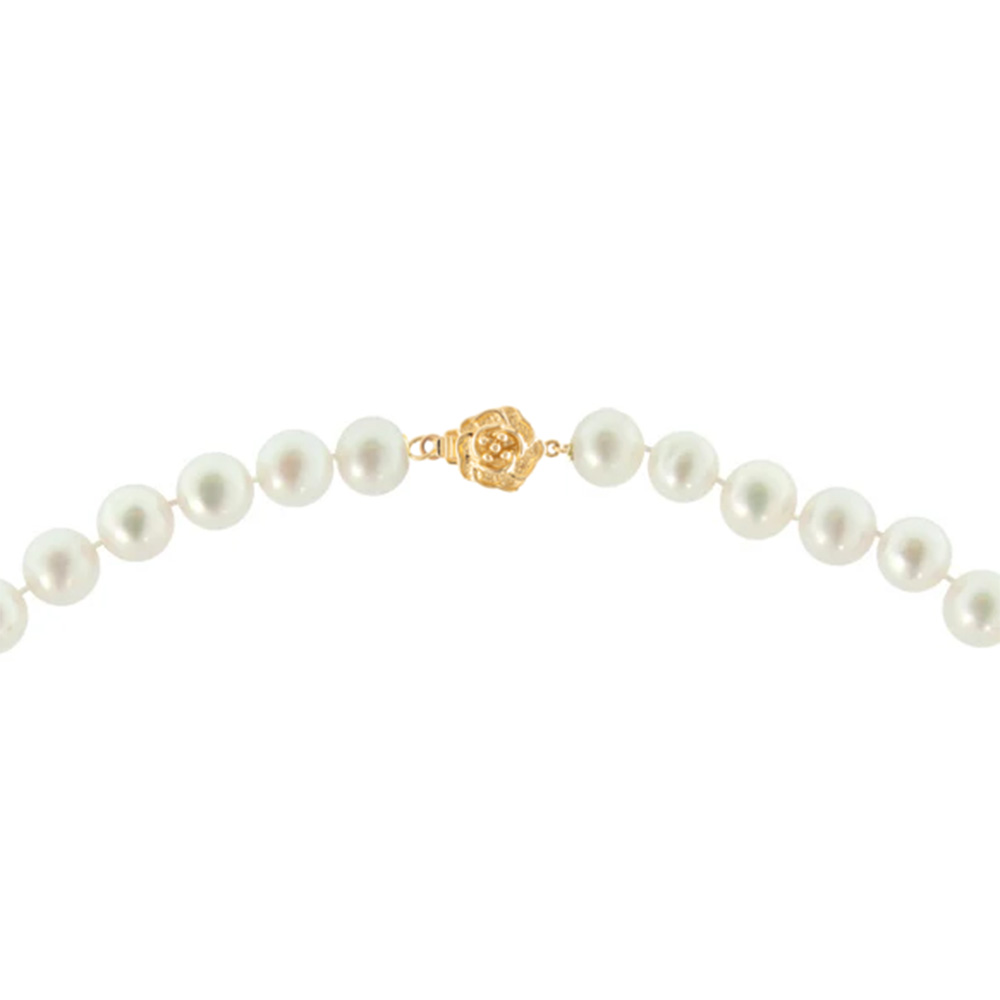 Κολιέ με Κ14 χρυσό σκαλιστό κούμπωμα και λευκά μαργαριτάρια 8-9 χιλιοστών - F126168