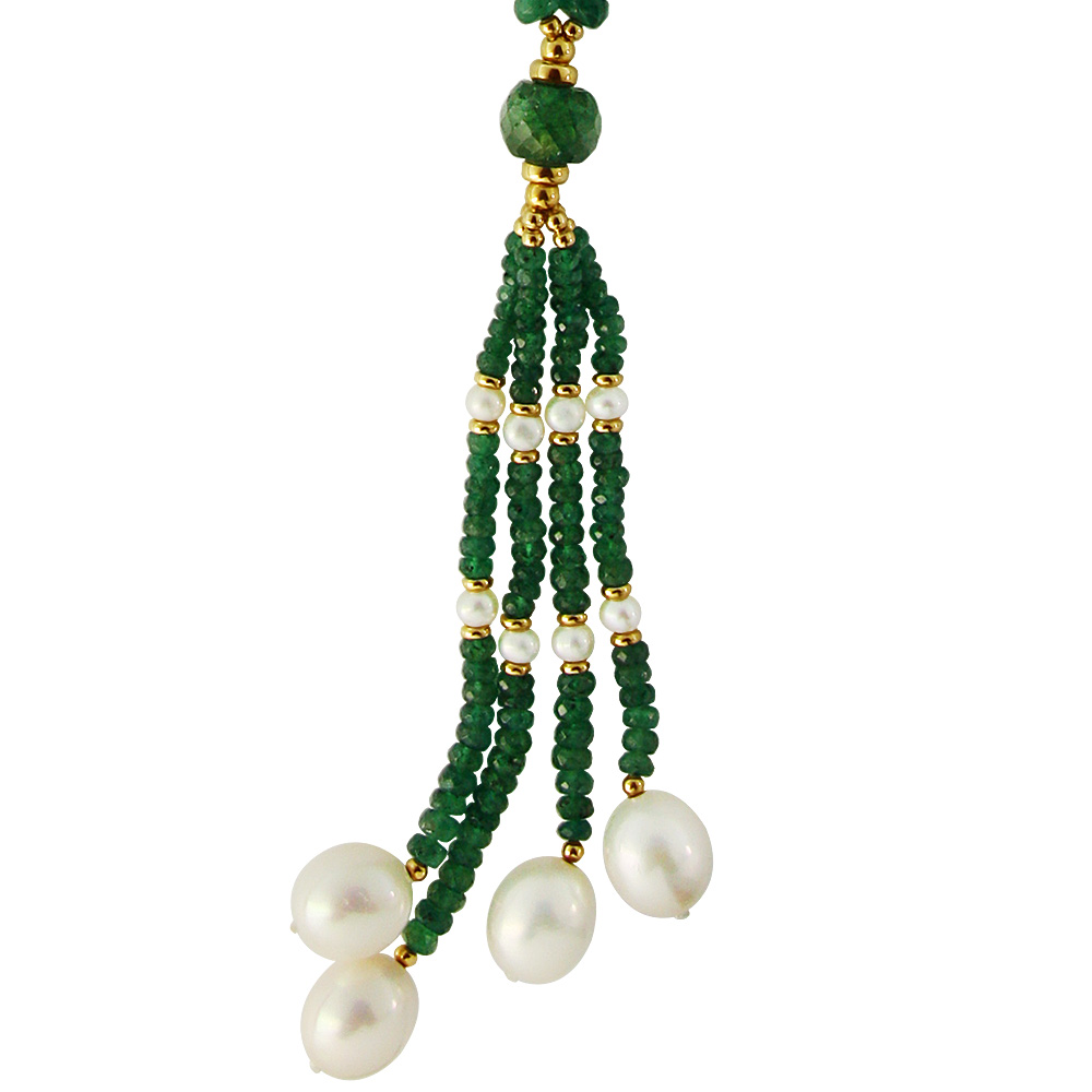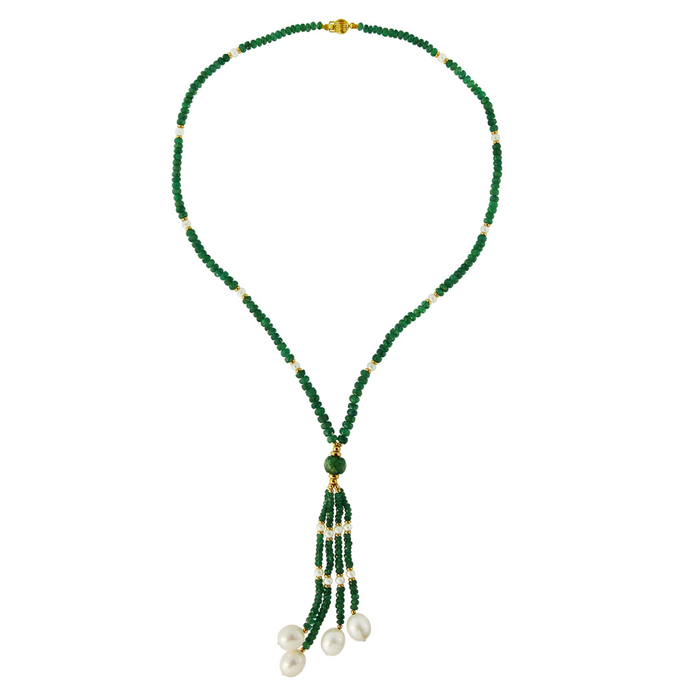 Κολιέ με σμαράγδια, μαργαριτάρια και χρυσά στοιχεία 14K - M121779
