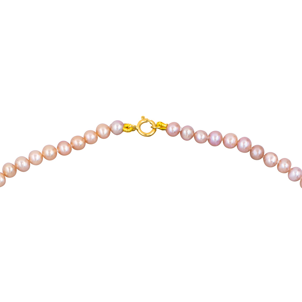 -8% Κολιέ με Κ14 χρυσό κούμπωμα και σομόν μαργαριτάρια - F126017S