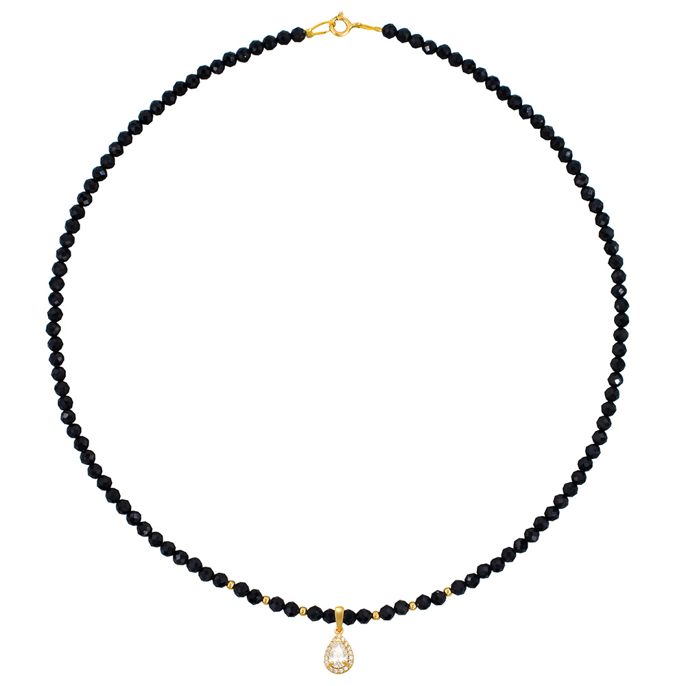 Ένα μοντέρνο κολιέ που συνδυάζει τον λαμπερό ημιπολύτιμο λίθο spinel με τη λάμψη του χρυσού μενταγιόν, που θα ολοκληρώσει κάθε σας εμφάνιση.