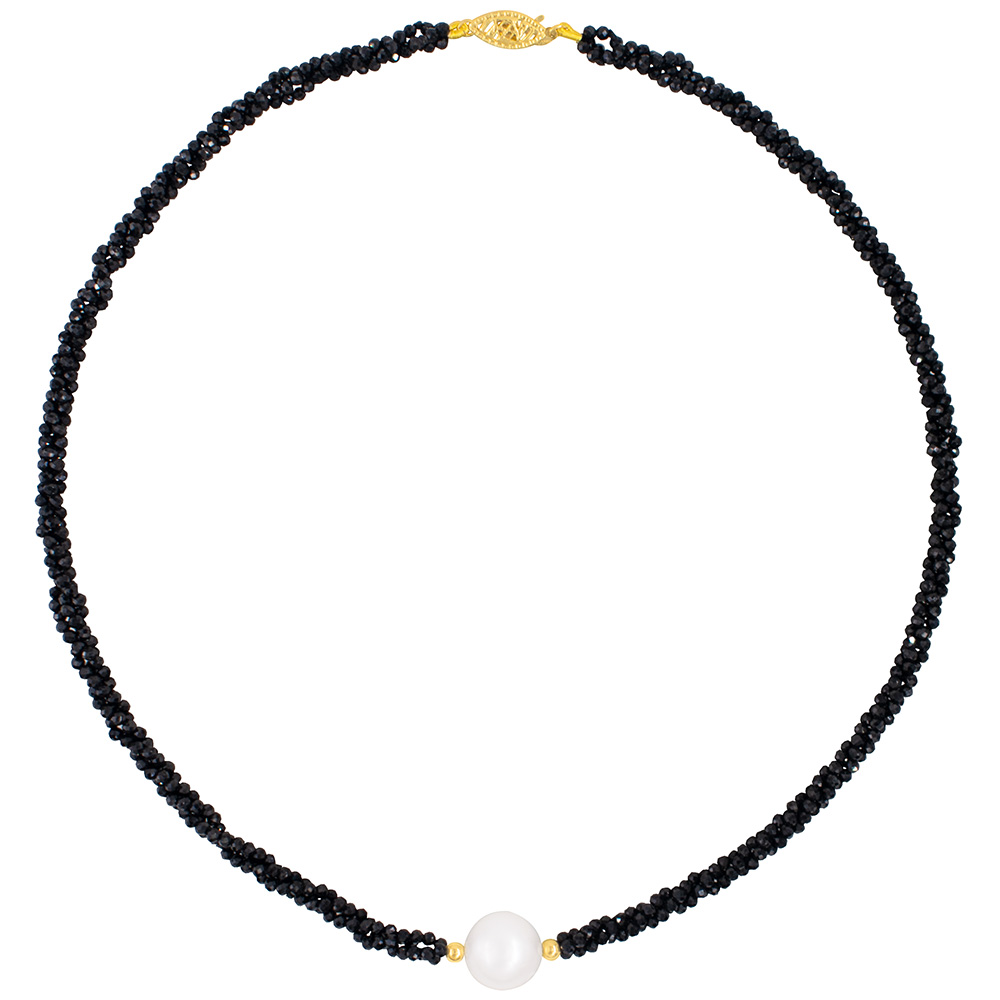 Νέο Κολιέ με Κ14 χρυσό κούμπωμα, spinel και λευκό μαργαριτάρι - F126508W