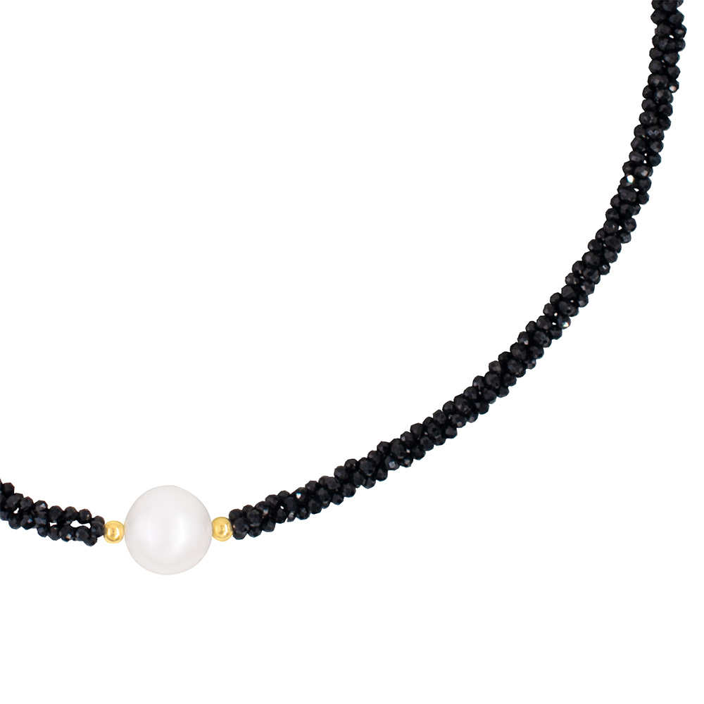 Κολιέ με Κ14 χρυσό κούμπωμα, spinel και λευκό μαργαριτάρι - F126508W