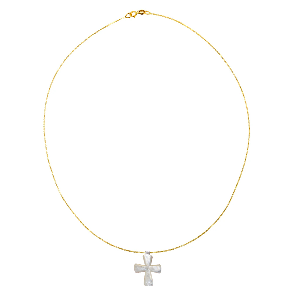 Κολιέ με σταυρό από Shell Pearl σε χρυσή αλυσίδα Κ14 - M123253C