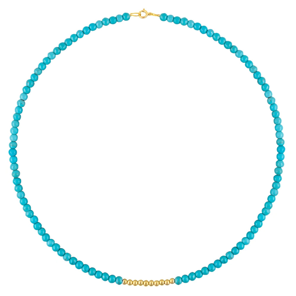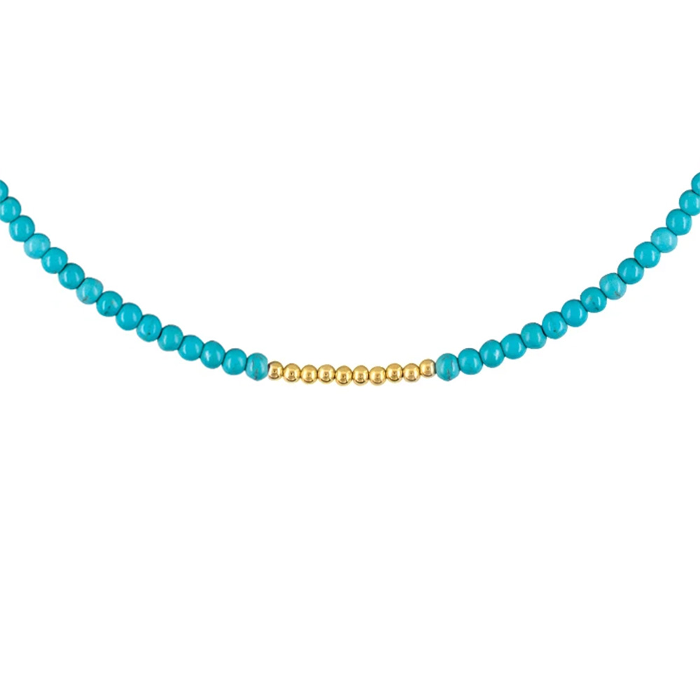 -22% Κολιέ με Κ14 χρυσά στοιχεία και τιρκουάζ - F125651T