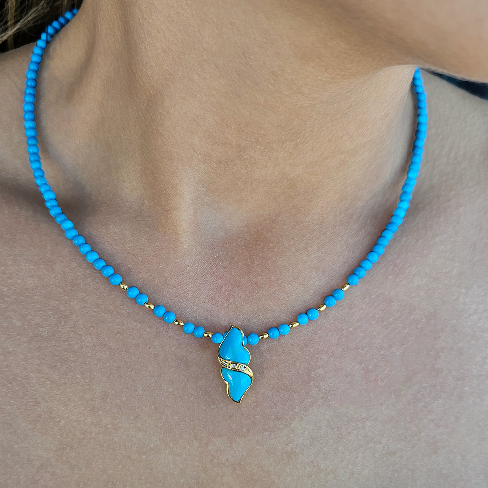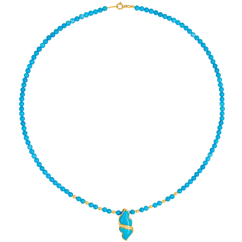 Κολιέ με Κ14 χρυσά στοιχεία, turquoise και μενταγιόν Κ18 χρυσό με διαμάντια και τιρκουάζ - F126495