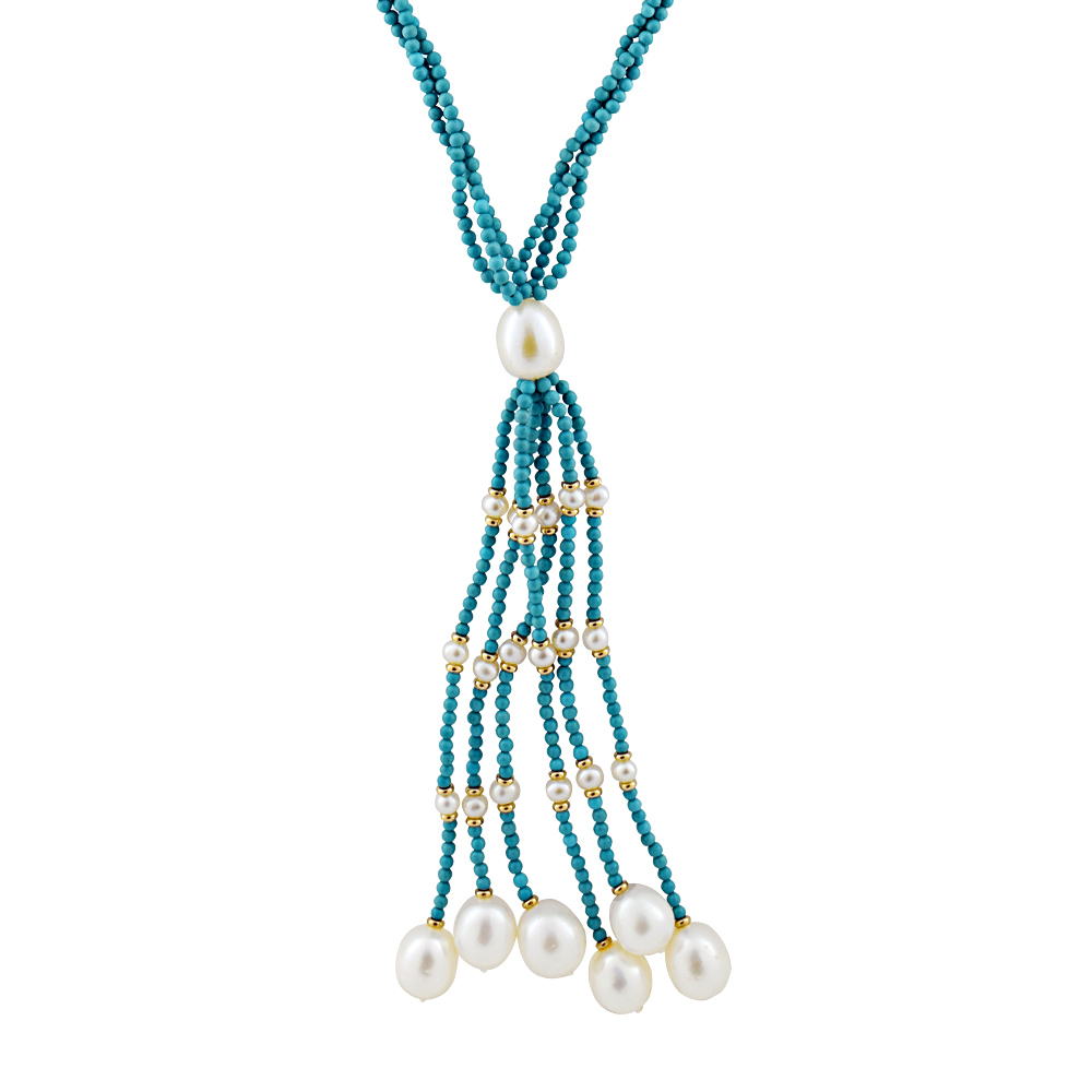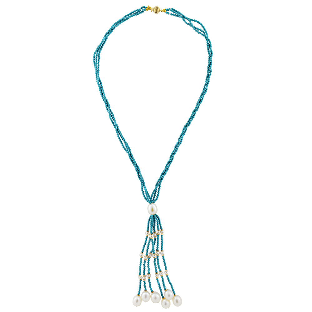 Κολιέ με τυρκουάζ, μαργαριτάρια και χρυσά στοιχεία Κ14 - M122827