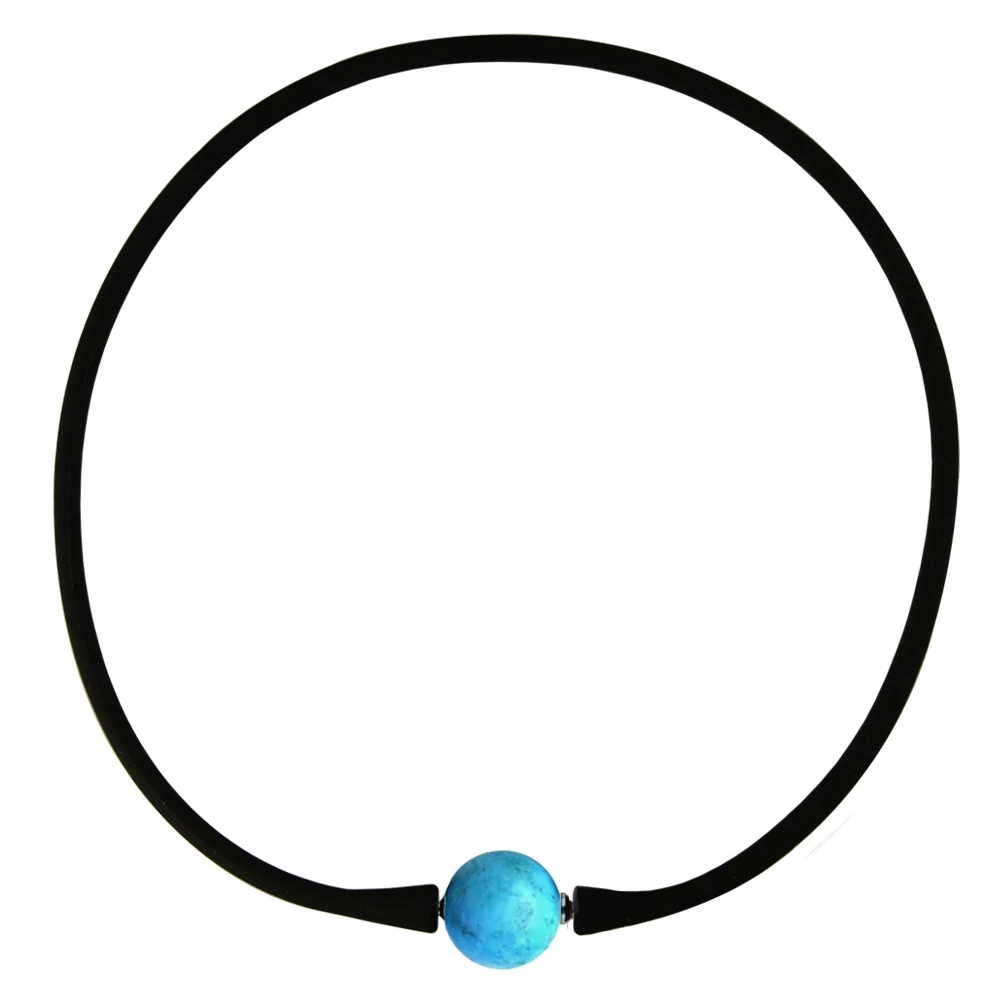 • Ένα υπέροχο νεανικό κολιέ με Elastic Silicon όπου στο κέντρο του έχει ένα Τιρκουάζ διαμέτρου 14 χιλιοστών.