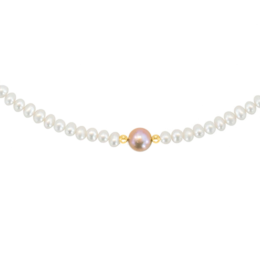 -25% Κολιέ με Κ14 χρυσά στοιχεία και σομόν μαργαριτάρι - S124011S
