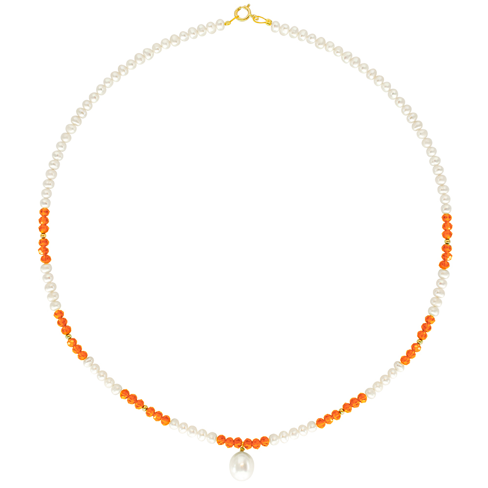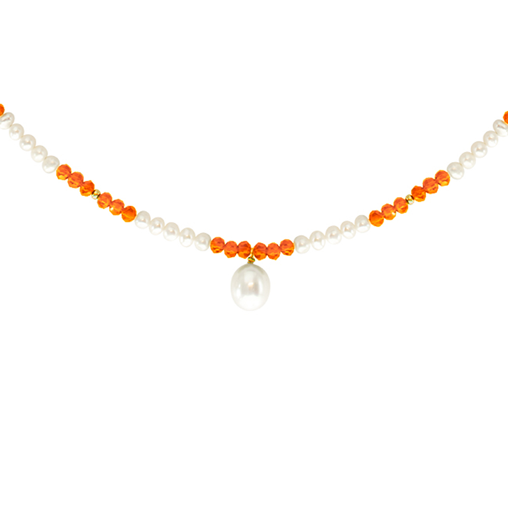 Στο κολιέ υπάρχουν διάσπαρτες 42 κρύσταλλα σε χρώμα πορτοκαλί και 6 χρυσές ροδέλες 14 καρατίων