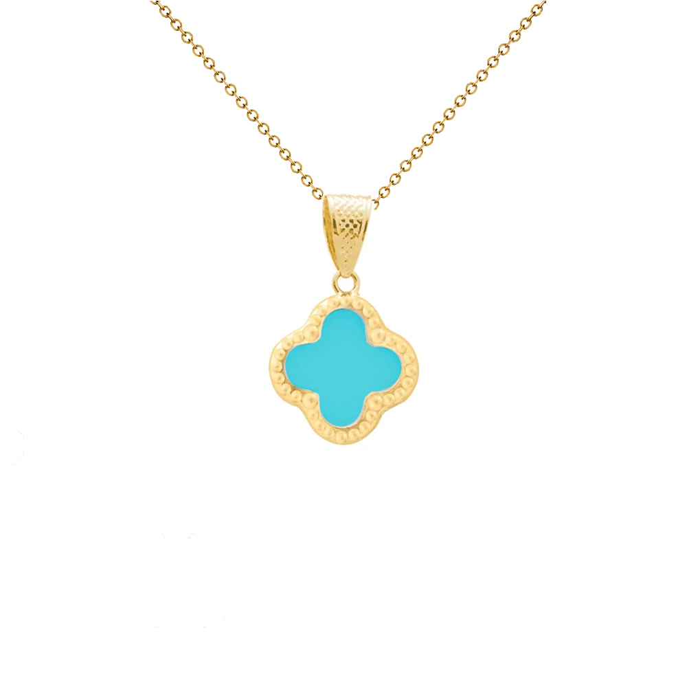 Κολιέ με χρυσή αλυσίδα και μενταγιόν Κ14 και τιρκουάζ- G125458TN