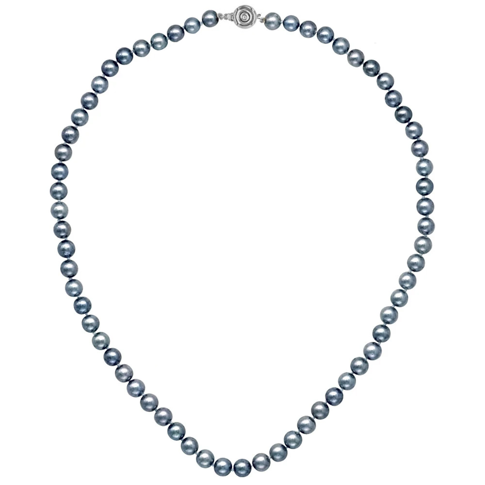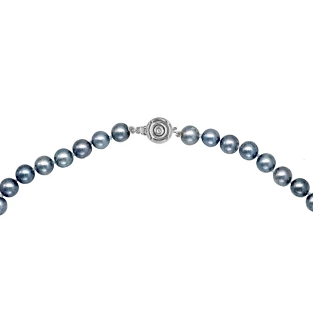 • Ένα μοναδικό κολιέ με γκρι μαργαριτάρια θαλάσσης QTV Akoya Pearl διαμέτρου 7 χιλιοστών, άριστης ποιότητας σε σχήμα Round (στρόγγυλο).