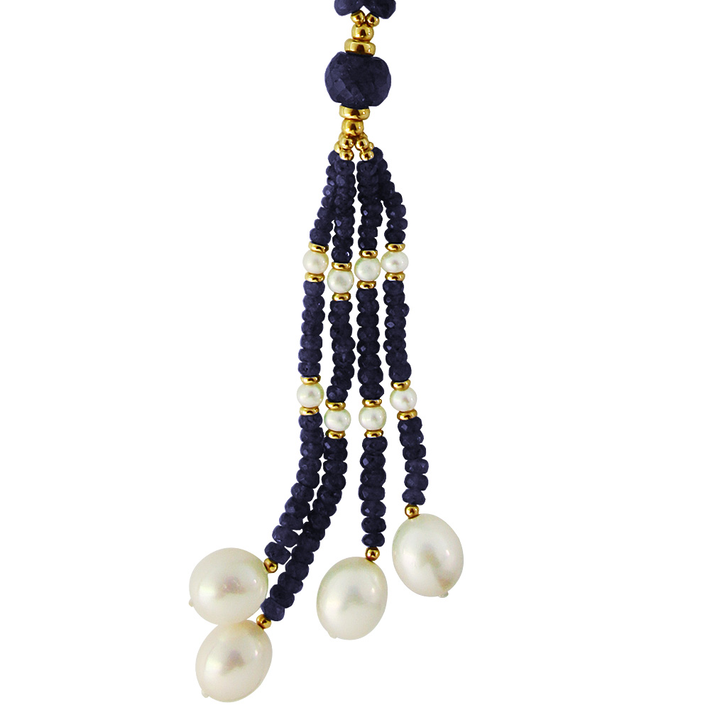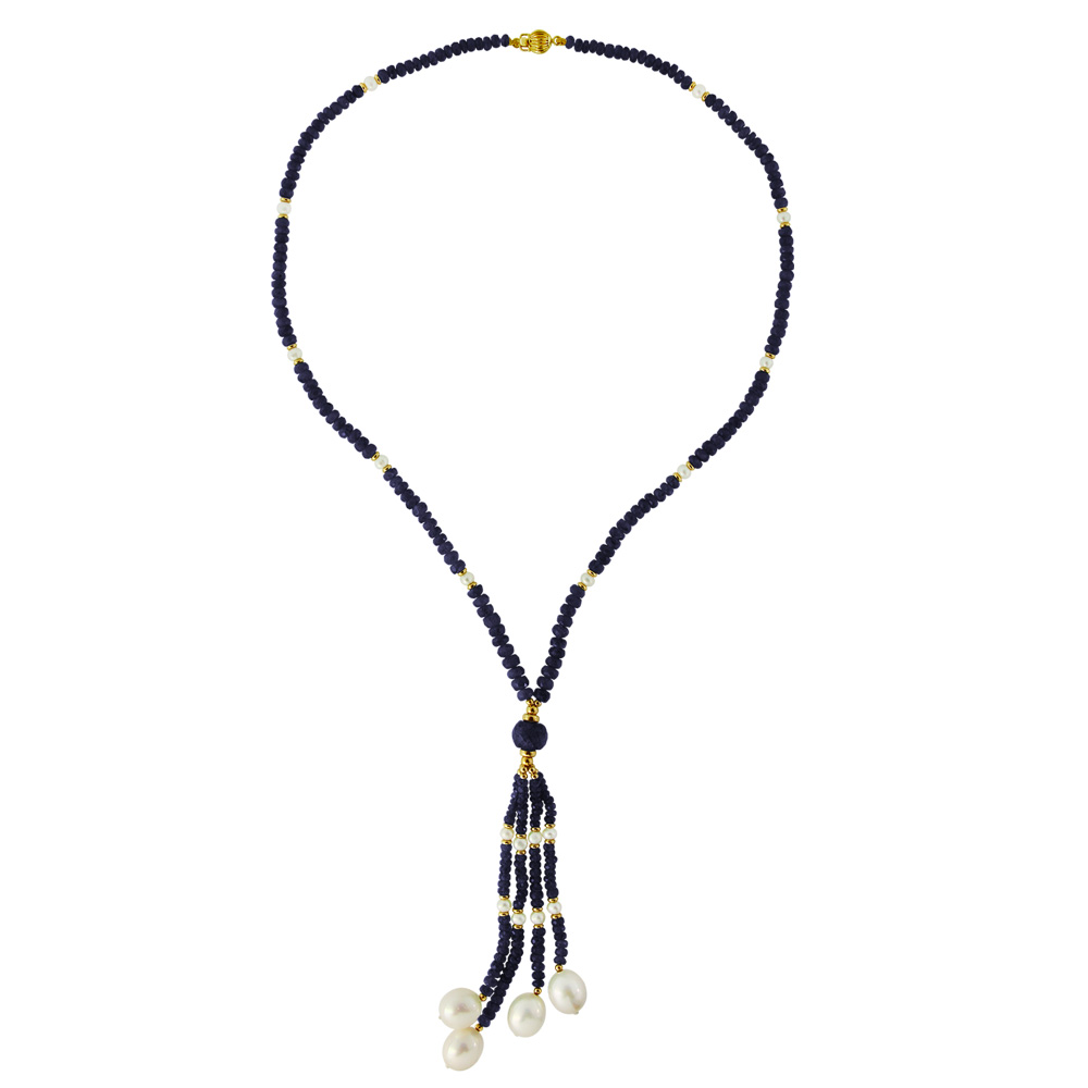 Κολιέ με Κ14 χρυσά στοιχεία, ζαφείρια και μαργαριτάρια - M121730