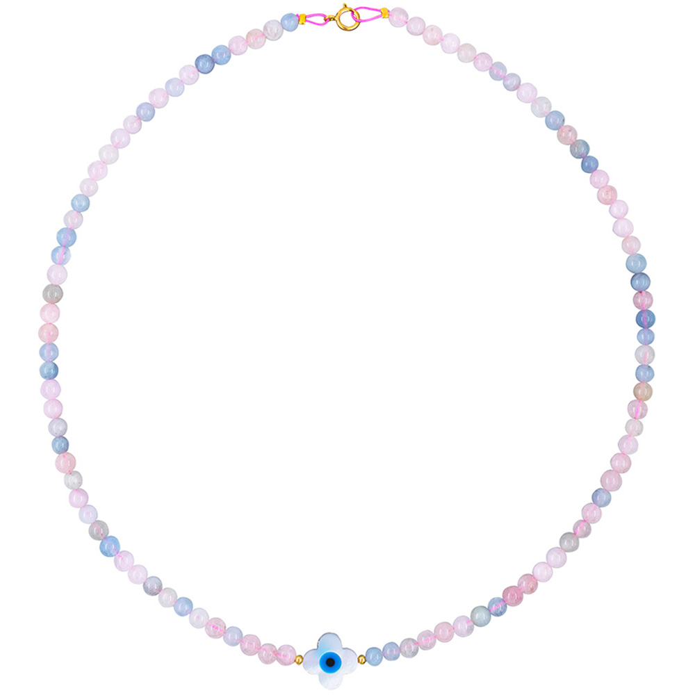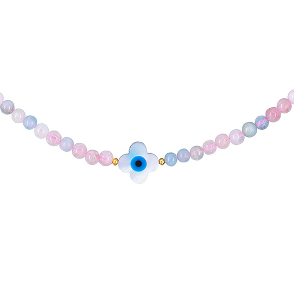 Κολιέ με Κ14 χρυσό κούμπωμα, μοργανίτη και ματάκι - F126124M