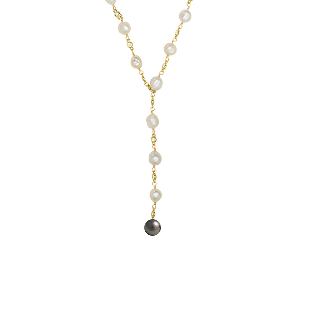 Κολιέ - ροζάριο 925 με λευκά μαργαριτάρια, μαύρο μαργαριτάρι και ζιργκόν - F124132WB