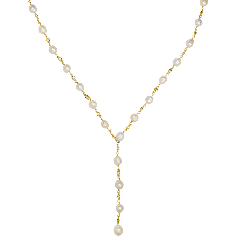 Κολιέ - ροζάριο 925 με λευκά μαργαριτάρια και ζιργκόν - F124132W
