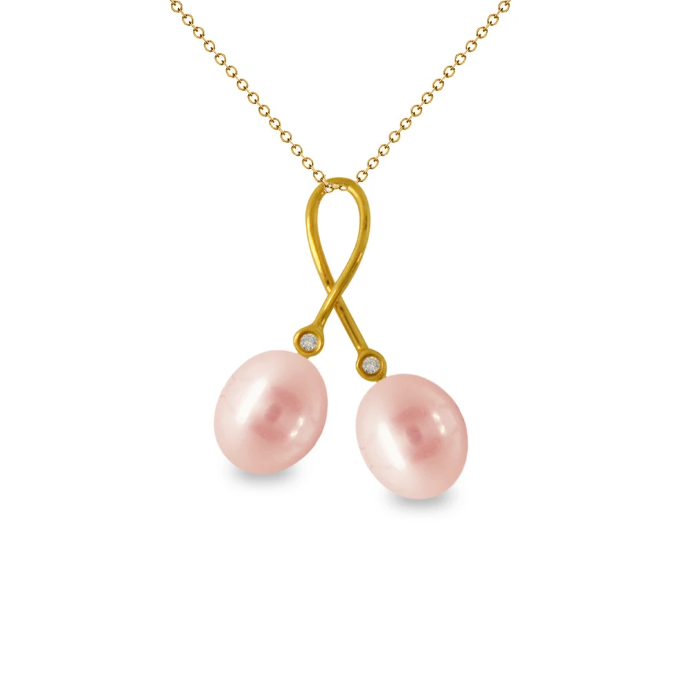 Κολιέ σε χρυσή βάση Κ18 με σομόν μαργαριτάρι και διαμάντι - G318890SN