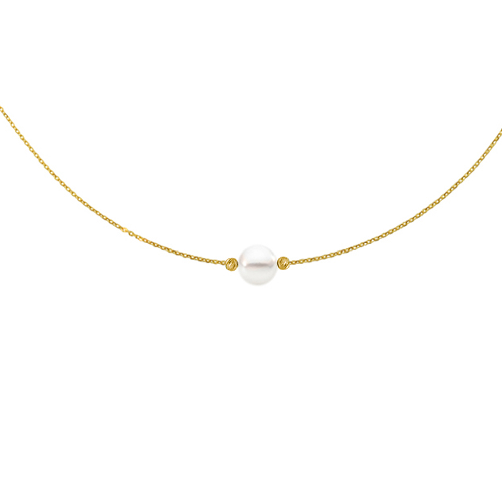 Κολιέ με λευκό μαργαριτάρι σε Κ14 χρυσή αλυσίδα - F124237