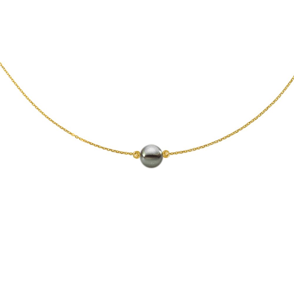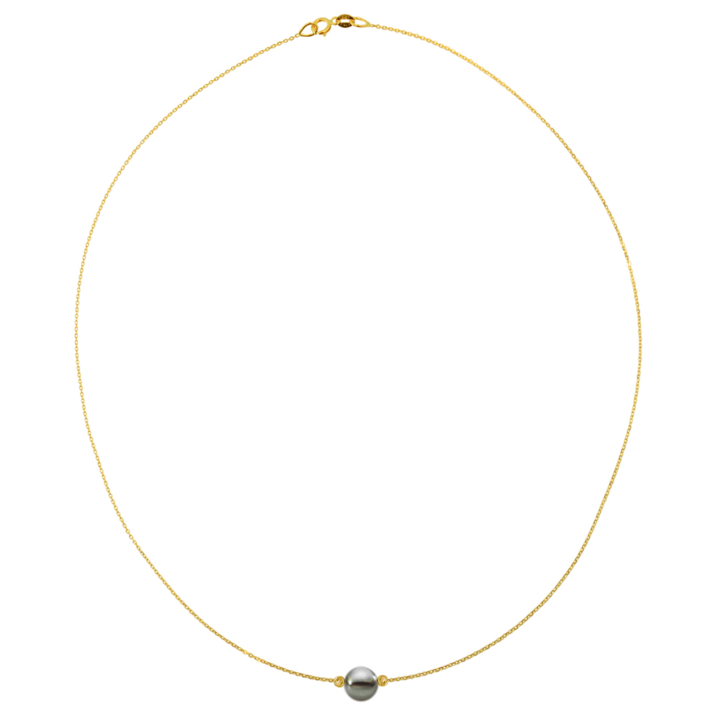 • Ένα υπέροχο κολιέ με μαύρο μαργαριτάρι Fresh Water Pearl διαμέτρου 8-9 χιλιοστών σε σχήμα στρογγυλό.