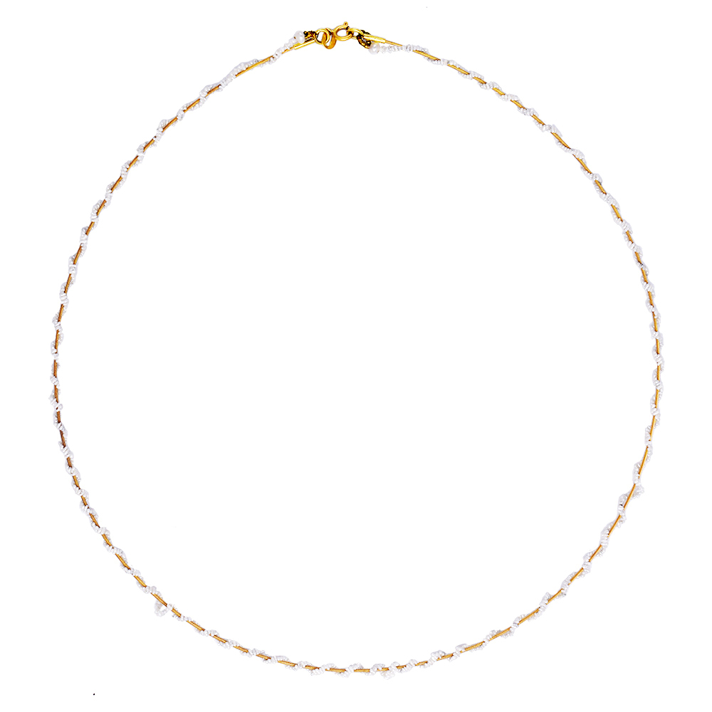 • Ένα υπέροχο χρυσό Κ18 κολιέ με λευκά μαργαριτάρια Seed Ιαπωνίας (Seed Pearl) διαμέτρου χιλιοστού.