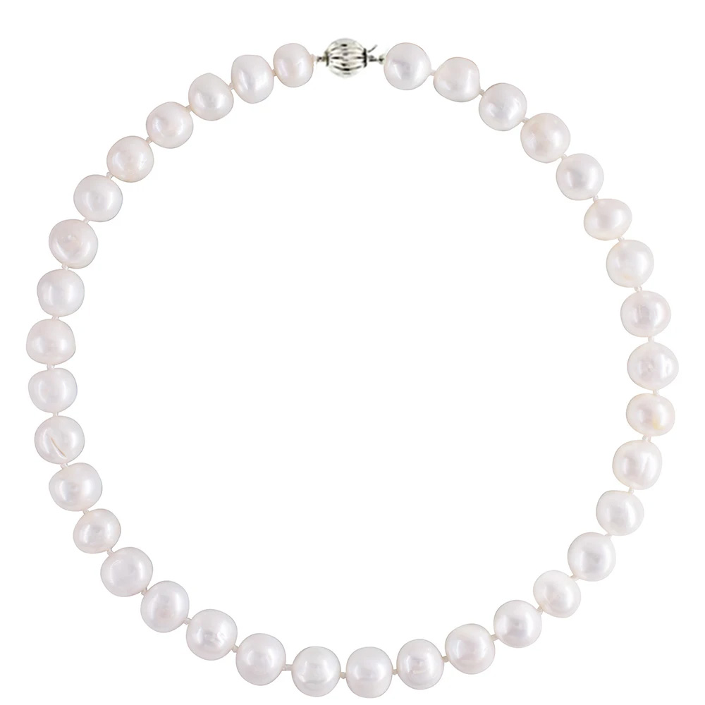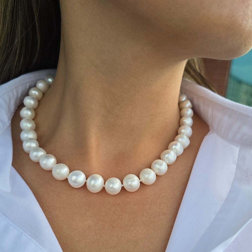 • Ένα υπέροχο κολιέ με λευκά στρογγυλοποιημένα μαργαριτάρια Fresh Water Pearl διαμέτρου 10-14 χιλιοστών.