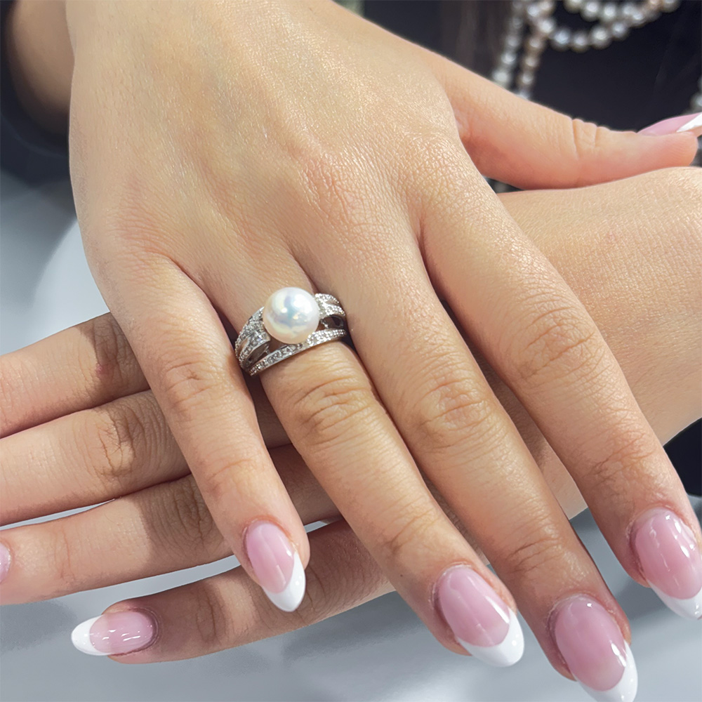 • Ένα φανταστικό δαχτυλίδι με 1 εντυπωσιακό και ολοστρόγγυλο λευκό μαργαριτάρι QTV Akoya Pearl, άριστης ποιότητας διαμέτρου 10.2 χιλιοστών.