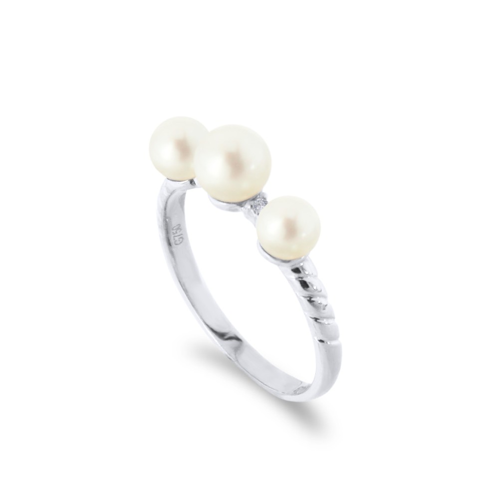 Δαχτυλίδι Κ18 λευκόχρυσο με μαργαριτάρια Akoya - W317283