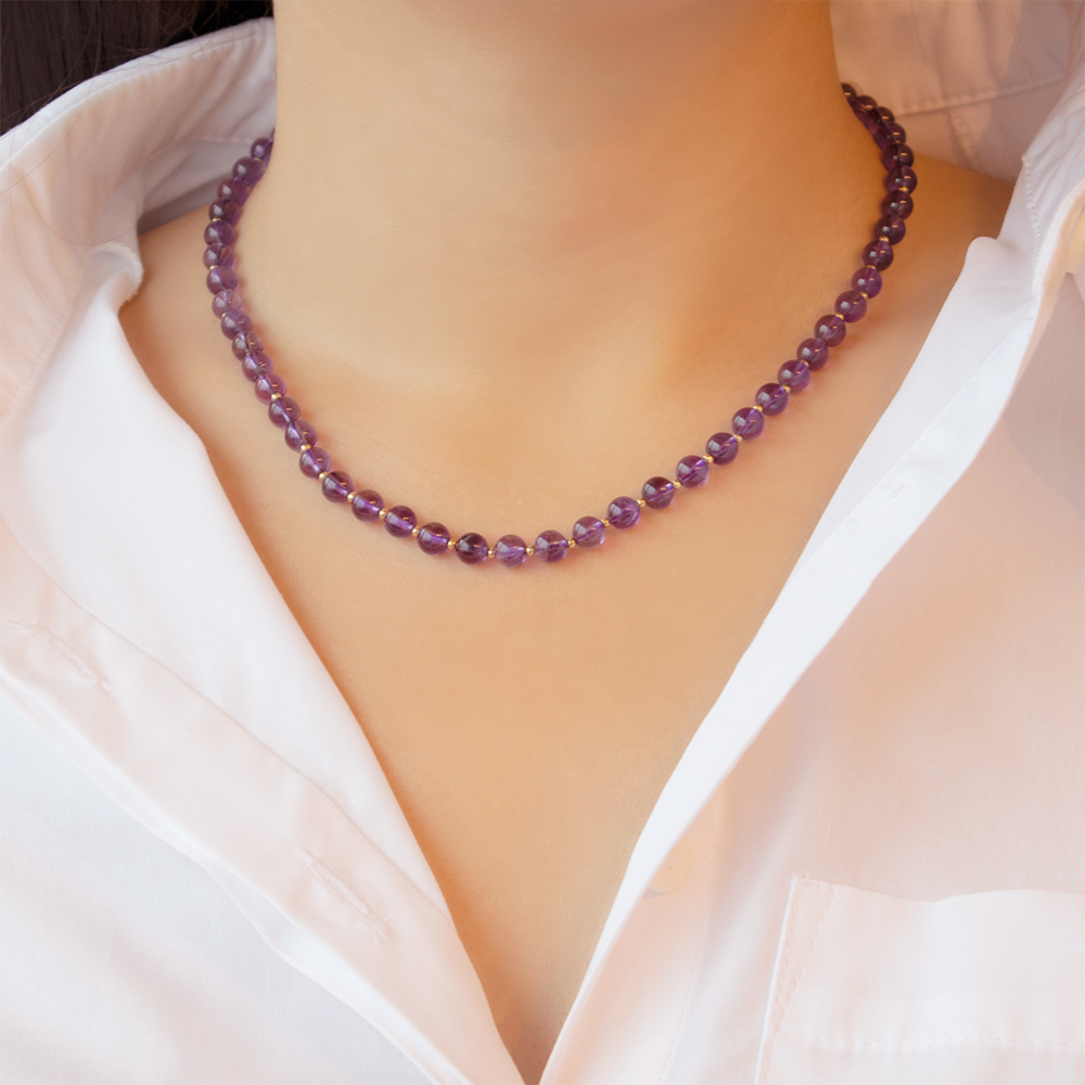 • Ένα υπέροχο κολιέ από ημιπολύτιμους λίθους αμέθυστου διαμέτρου  χιλιοστών.
