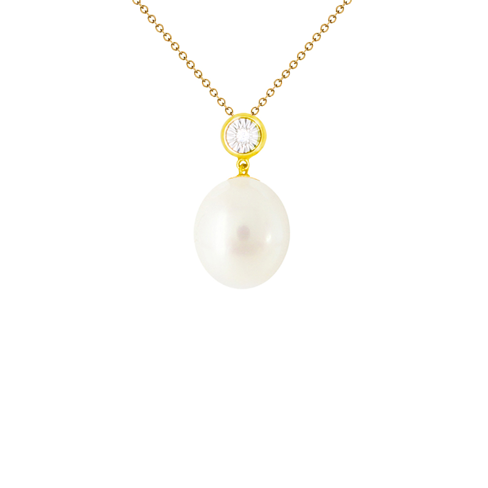 • Ένα μοναδικό μενταγιόν με λευκό μαργαριτάρι Fresh Water Pearl  σε σχήμα σταγόνας άριστης ποιότητας  με διάσταση 8,5 - 11 χιλιοστών.