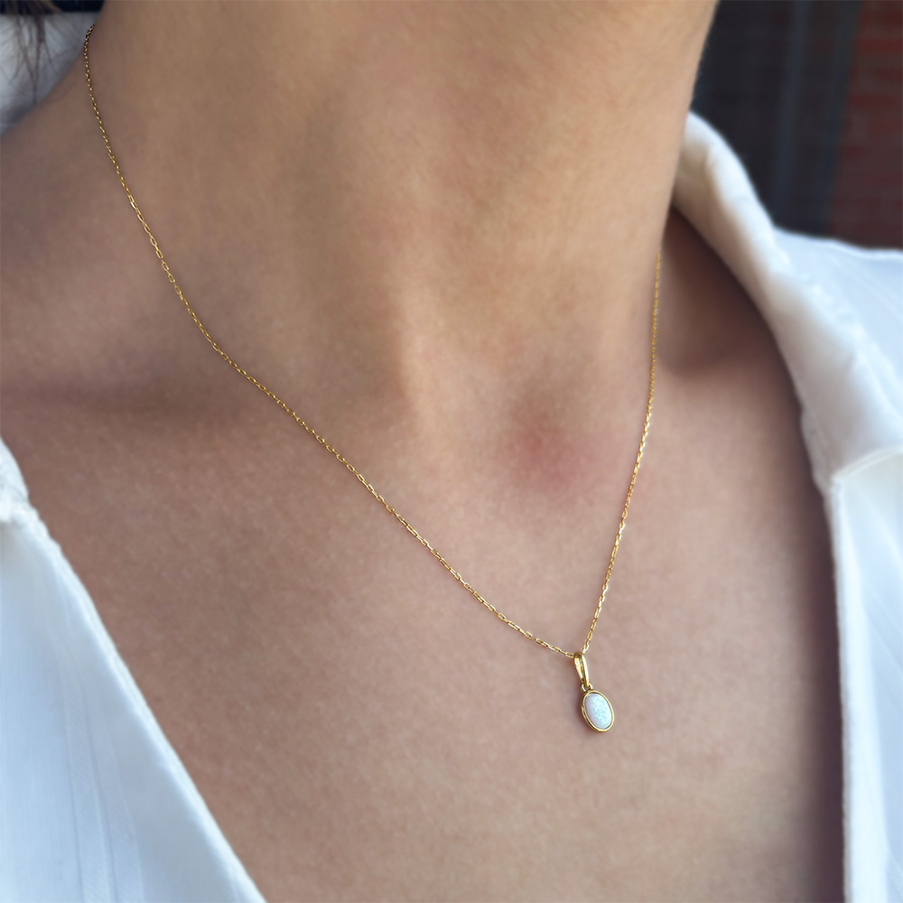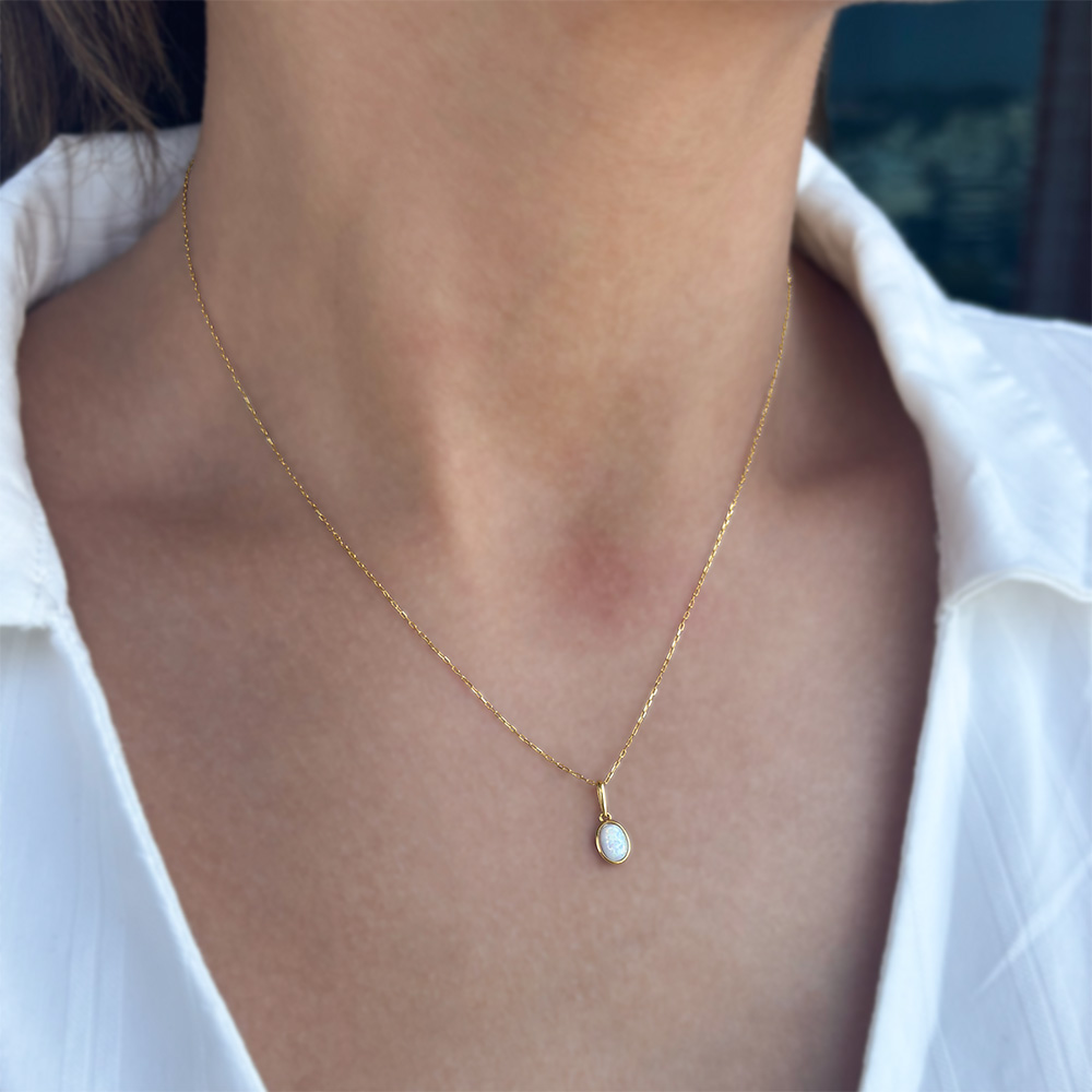 • Ένα υπέροχο μενταγιόν με ημιπολύτιμο λίθο οπάλιο διαμέτρου 5,5x7 χιλιοστών.
