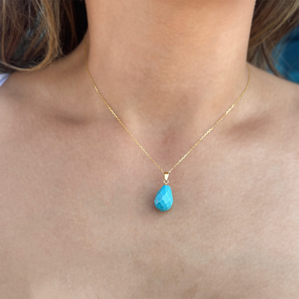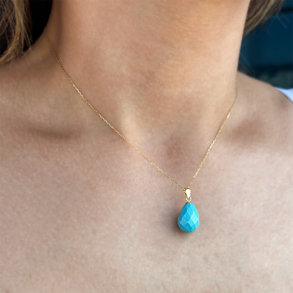 • Ένα υπέροχο μενταγιόν μα φασεταρισμένο ημιπολύτιμο λίθο turquoise διάστασης 9,5x14 χιλιοστών σε σχήμα σταγόνας.