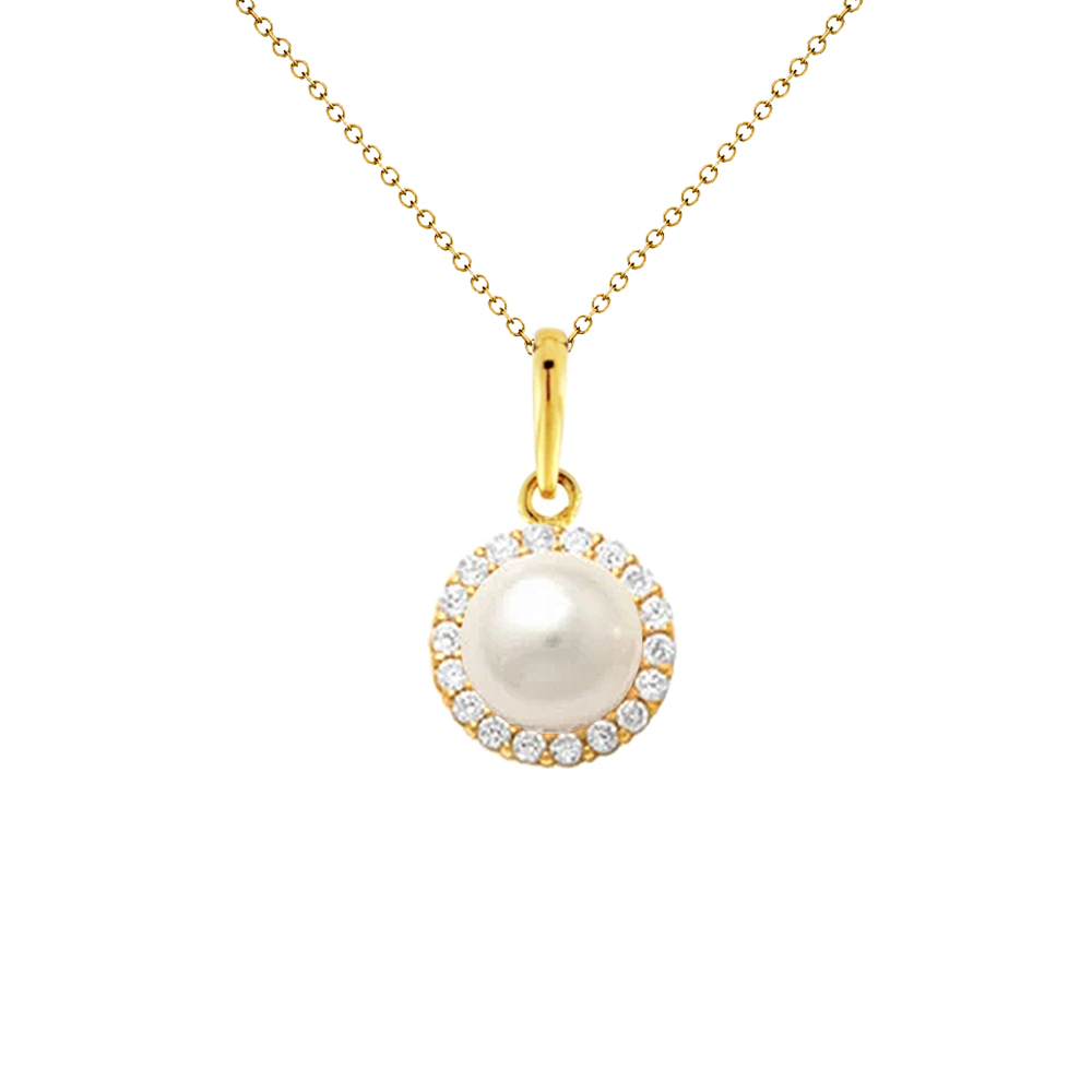 -13% Μενταγιόν Κ14 χρυσό με λευκό μαργαριτάρι Akoya και ζιργκόν - G124533W