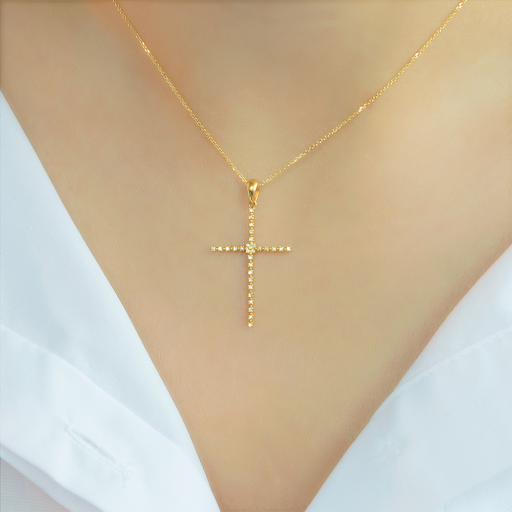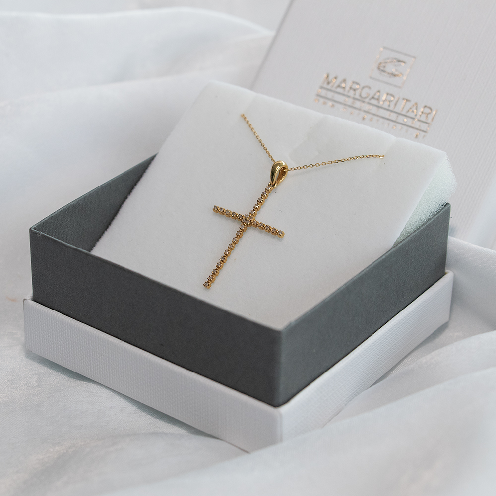 • Ένας υπέροχος χρυσός σταυρός 18 καρατίων με λουστρέ φινίρισμα.