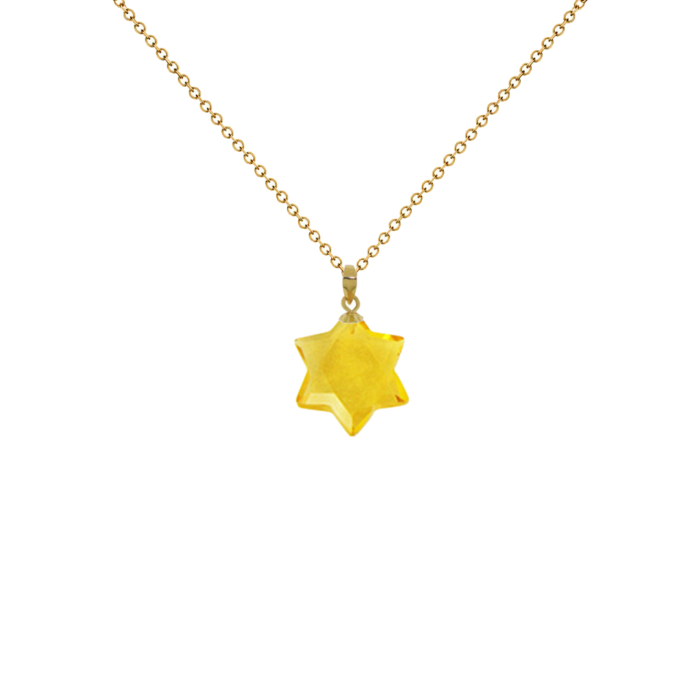 • Ένα υπέροχο μενταγιόν με μία λαμπερή και εντυπωσιακή Lemon Quartz Cubic Zircon πολυεδρικής κοπής σε σχήμα αστέρι, διαμέτρου 15 χιλιοστών.