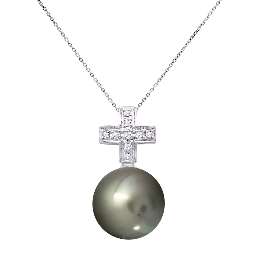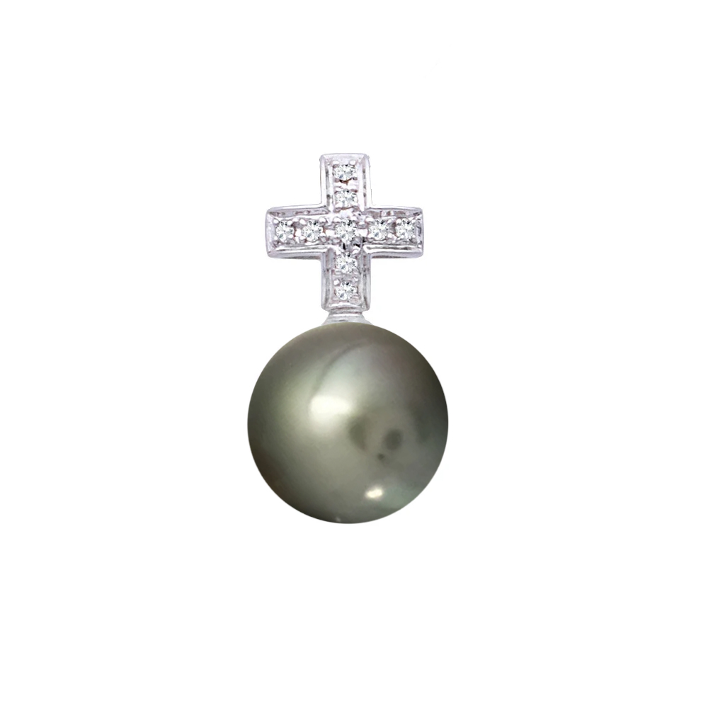 • Ένα ιδαίτερο μενταγιόν - σταυρός με 1 μαύρο μαργαριτάρι South Sea Tahiti άριστης ποιότητας διαμέτρου 13,5 χιλιοστών.
