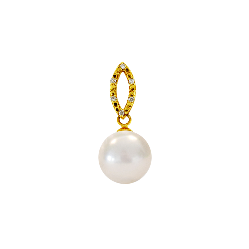Μενταγιόν χρυσό Κ14 με λευκό μαργαριτάρι και διαμάντια - G122656