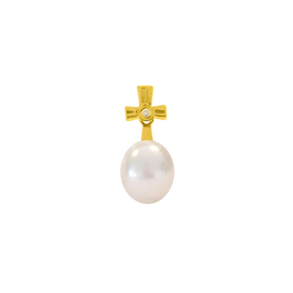 Μενταγιόν με Κ18 με χρυσή βάση, λευκό μαργαριτάρι και διαμάντι - M317581