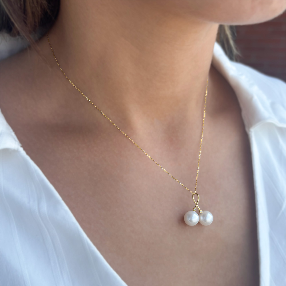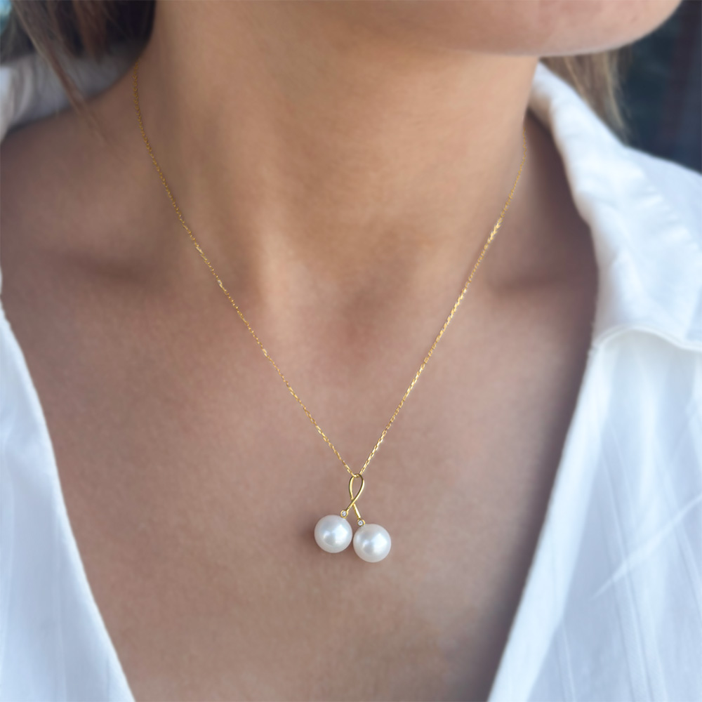 • Ένα μοναδικό και ιδιαίτερο μενταγιόν με 2 λευκά μαργαριτάρια QTV Akoya Pearl διαμέτρου 10-10.5 χιλιοστών, σε σχήμα Round, άριστης ποιότητας.