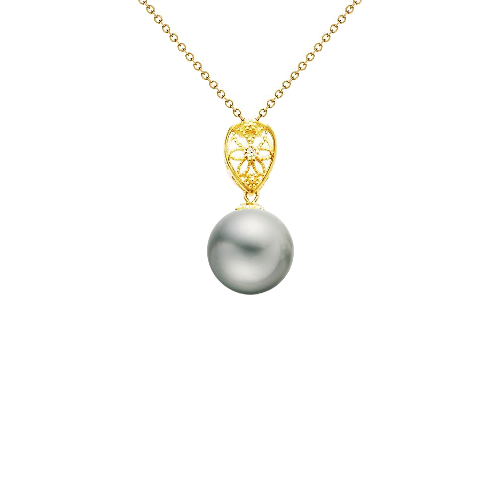 • Ένα μοναδικό μενταγιόν με γκρι μαργαριτάρι Q.T.V. AKOYA Pearl , άριστης ποιότητας με διάσταση 8 χιλιοστών.