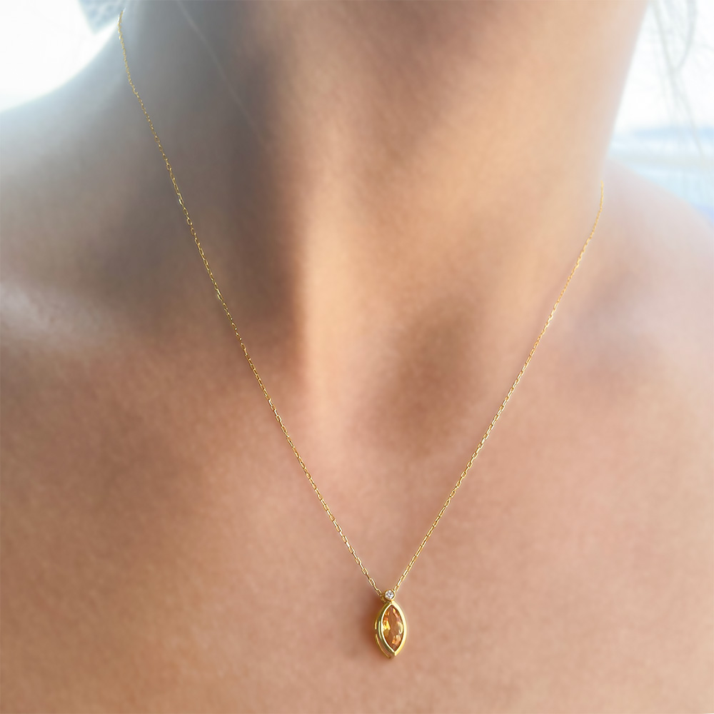 Ένα ευκολοφόρετο μενταγιόν που συνδυάζει το γλυκό χρώμα του citriine με τον χρυσό και διαμάντι.