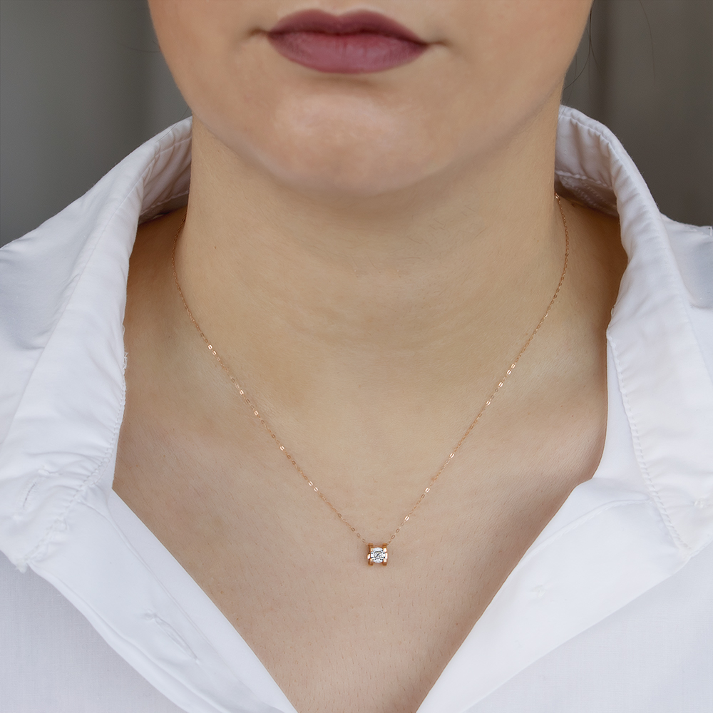 • Ένα πανέμορφο μενταγιόν από ροζ χρυσό 18 καρατίων.