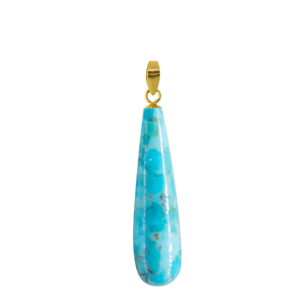 • Ένα υπέροχο μενταγιόν με ημιπολύτιμο λίθο Spiny Oyster διάστασης 8x30 χιλιοστών σε σχήμα σταγόνας και αποχρώσεις του γαλάζιου.